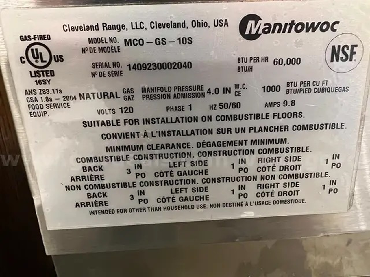 | Notes: **Just Removed From a School**This Used Garland Gas Double Convection Oven MCO-GS from School 12 Racks just came out of a working environment and is in good cosmetic and operating condition. Not sure if this is the correct unit for you? Call BizMart at 512-222-3117; we are always here to help. | |