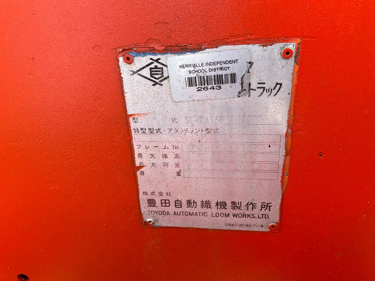 | Notes: **From School: Converted to Propane, Totally Serviced & Painted**This is an older forklift with a clutch and runs kind of like a tractor.**This Used Used Toyota Forklift 3000lb Double Mast Propane Pneumatic Model: 3FGH15 was acquired from a school and is in good cosmetic and operating condition. Not sure this is the correct unit for you? Call BizMart at 512-222-3117, we are always here to help. | |